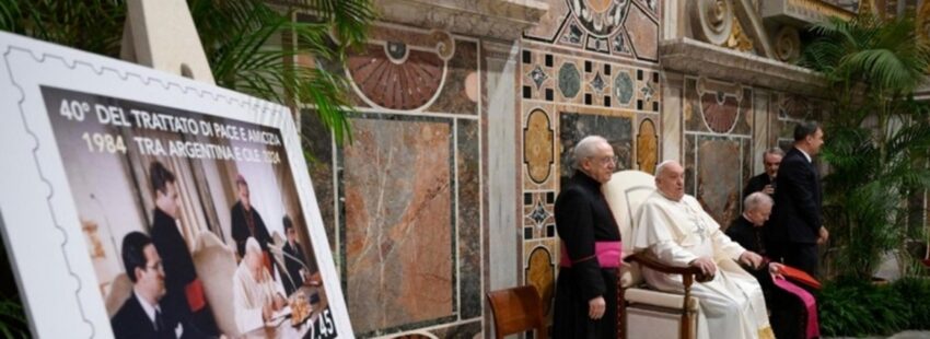 El Papa presidió en el Vaticano un acto conmemorativo del Tratado de Paz y de Amistad entre ambos países, pese al desplante diplomático del Gobierno de Milei
