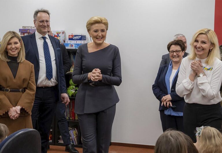 Agata Kornhauser-Duda y Olena Zelenska visitaron el Centro de Asistencia a Migrantes y Refugiados de Varsovia