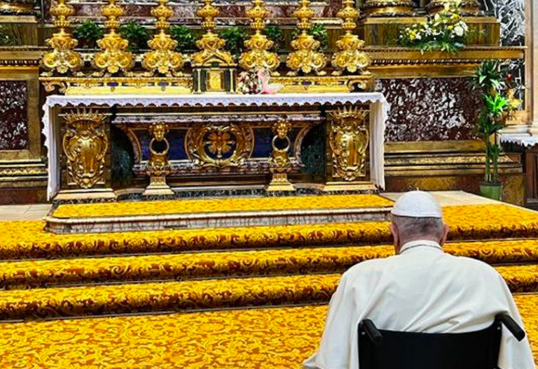 Francisco ha acudido hoy a la basílica de Santa María La Mayor de Roma para orar a solas por su próximo viaje