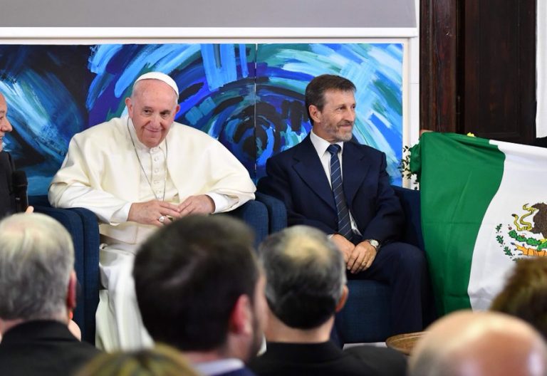 El papa Francisco recibió a los participantes y firmó un buzo que llevaron como recuerdo del encuentro ‘Meaning Meets Us’