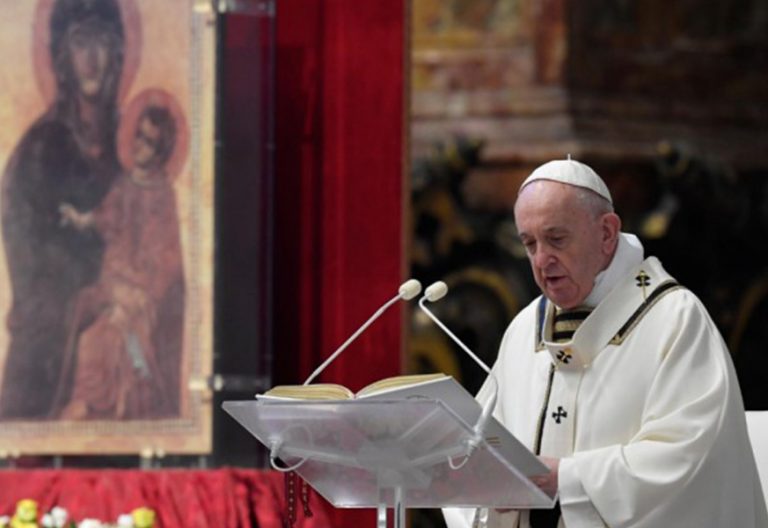 “Acallemos los gritos de muerte, que terminen las guerras, que se acabe la producción y el comercio de armas, que cesen los abortos, que matan la vida inocente”, exigió Bergoglio