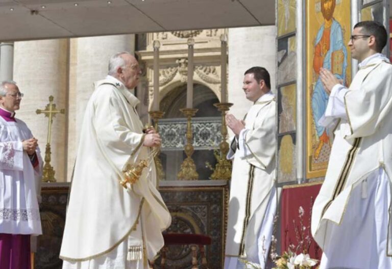 Francisco pronunció la homilía y administró el sacramento del bautismo, pero cedió la presidencia de la celebración al cardenal Re