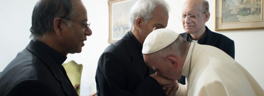 - Francisco recibió esta mañana al sacerdote, que se echó a sus pies al verle mientras el Papa le levantaba para besarle las manos