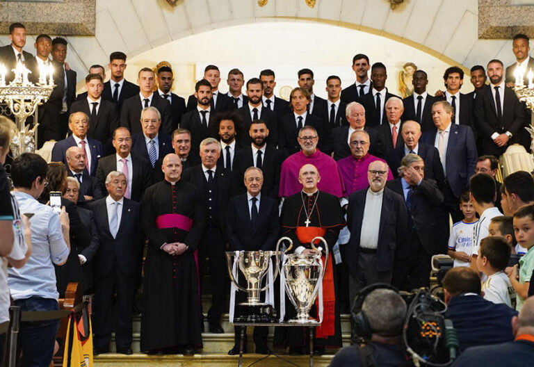 El club blanco lleva a la catedral los trofeos de su 35º victoria de la Liga y su decimocuarta copa Liga de Campeones