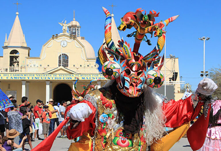 La fiesta multitudinaria más tradicional de la religiosidad popular en Chile, reconocida por el Papa Francisco en su visita a Iquique el año pasado, se realiza en homenaje a la Virgen del Carmen y ocurre en el pueblo de La Tirana en medio del desierto.