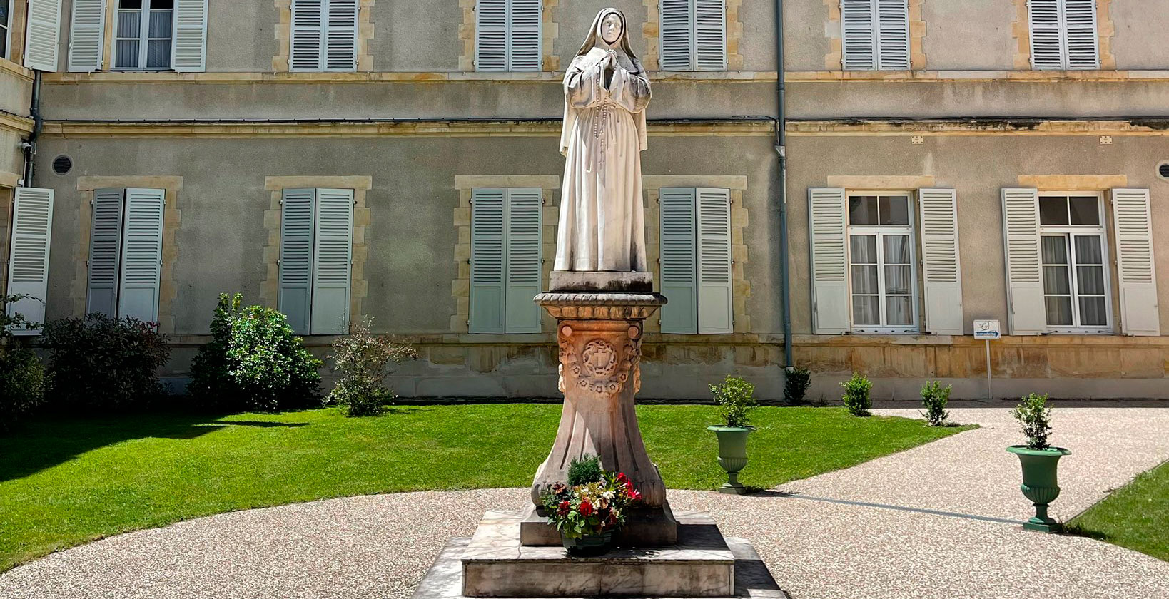Hoy, 16 de abril, visito tu casa y me dispongo a pasear por esos mismos jardines. Me acerco a tu lugar favorito, una especie de edén alejado en un extremo. Allí, me indicas con entusiasmo indisimulado, te encontrabas con la imagen de Nuestra Señora de las Aguas. Alcanzo el lugar y observo a mi alrededor. Contemplo los arriates y noto el nacimiento de las primeras flores que anuncian la primavera en Nevers. Un sol radiante baña a las flores más delicadas, no como algo que se deja caer, sino como algo que es dejado caer…. Presto atención a la imagen de MARÍA que me regala una cierta sonrisa y gesto acogedor y, precisamente en ese momento, alcanzo a comprender el significado profundo de la palabra inocencia de corazón, que me recuerda aquellas otras palabras sensibles del papa Pio XI para tu canonización: “Sencillez evangélica e integridad digna de toda confianza”. Amén.