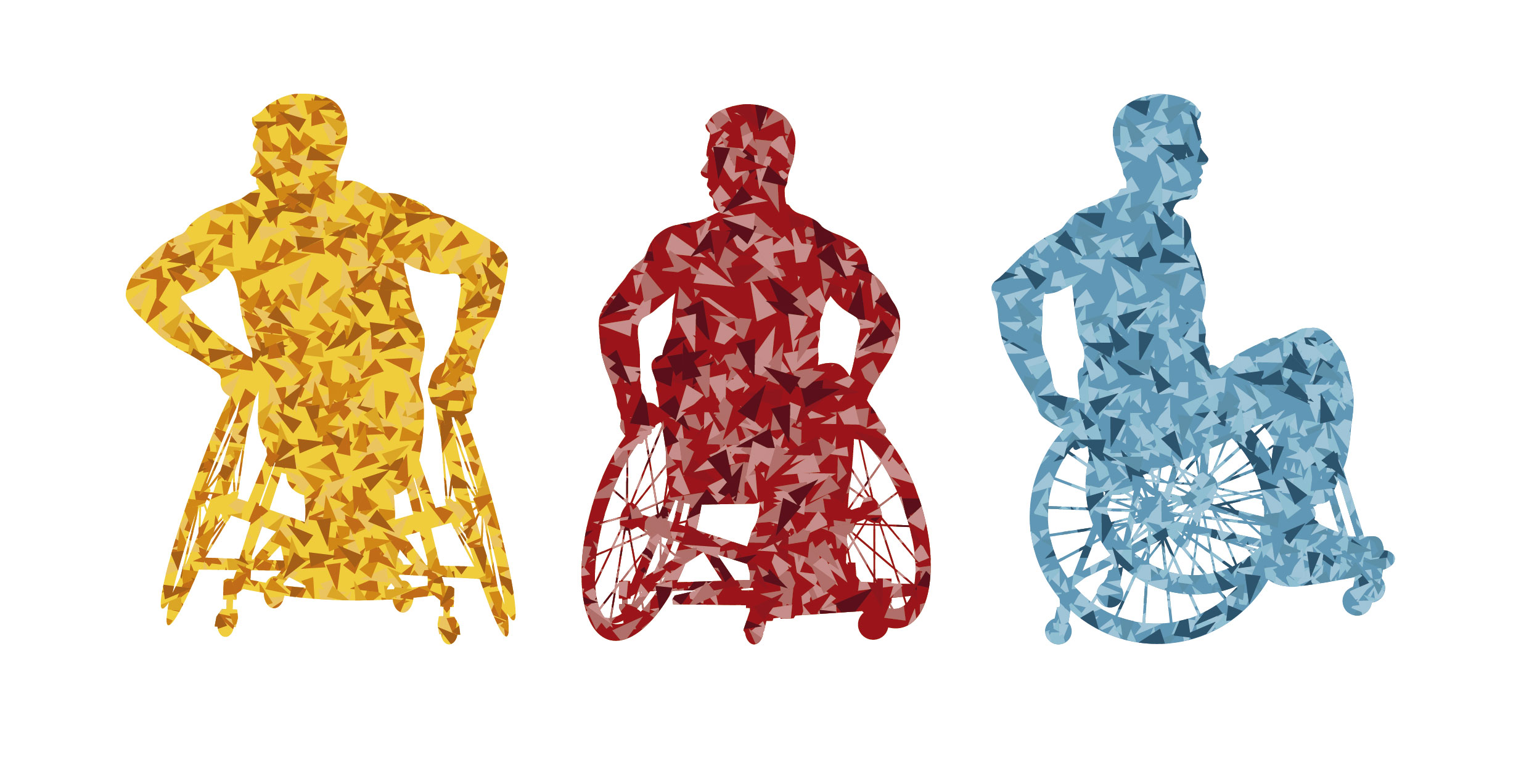 Ilustración de tres deportistas en sillas de ruedas. Juegos paralímpicos