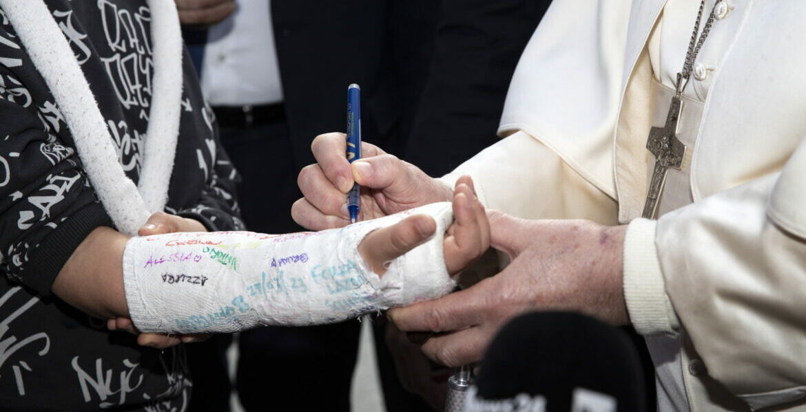 El Papa firma la escayola de un niño a su salida del hospital Gemelli el pasado sábado. EFE/EPA/ANGELO CARCONI