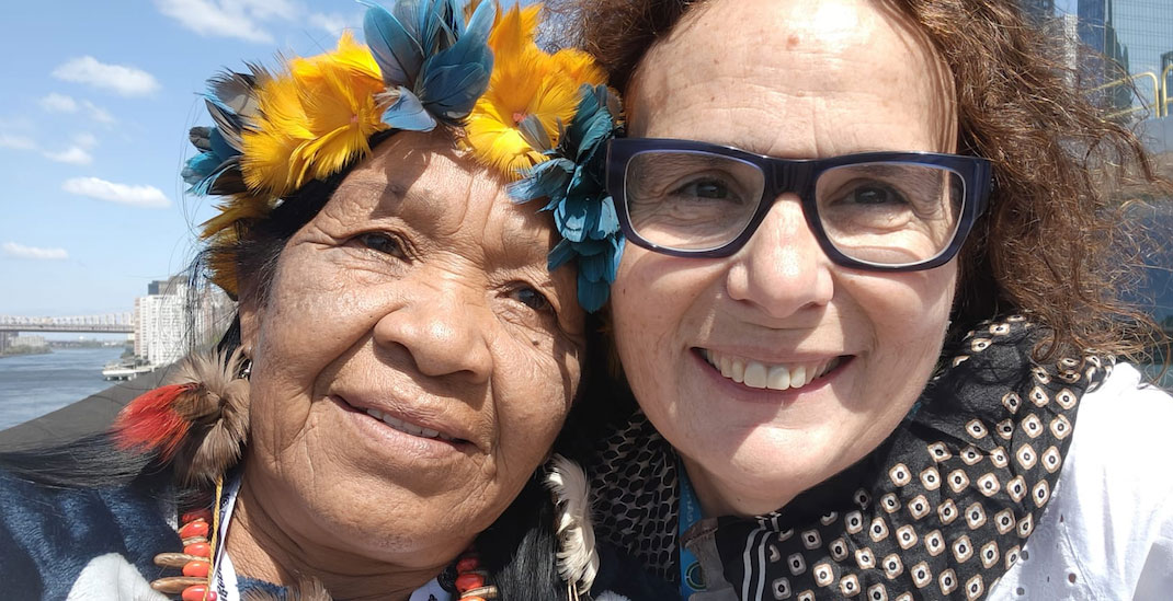 Es un no parar de cambios de última hora, tensiones sobre cuándo y cuánto tiempo van a poder hablar las lideranzas que acompañamos las organizaciones de REPAM (Red Eclesial Panamazónica), PUAM (Programa Universitario de la Amazonía), CIMI (Consejo Indigenista Misionero de Brasil) y CAAAP (Centro Amazónico de Antropología y Aplicación Práctica de Perú). De subidas y bajadas por las plantas de los edificios de Naciones Unidas al lado de la 1st en Manhattan y de salidas corriendo a misiones permanentes aledañas para ver si podemos conseguir unos minutos en los momentos de plenario. Con la mezcla del portugués, español e inglés que termina convirtiéndonos en una torre de babel donde nos reímos cuando ya no sabemos cómo se dice algo en nuestra propia lengua. El WhatsApp ardiendo buscando contactos que a su vez contacten con otros y otras para rescatar un documento, conseguir entrar en el listado de oradoras o una salita para reunirse con un relator o alguien de la oficina del Consejo de Seguridad. El susto de correr para grabar la intervención que luego hay que subir a Twitter y a Instagram y poner mal el celular (¡ay madre¡) y las bromas cuando por fin la presidencia golpea en la madera y da por finalizada la sesión: mañana será otro día y volveremos a intentarlo. Nueve mujeres y hombres de cuatro países: Perú, Brasil, Bolivia y España. La Amazonía y sus derechos humanos violentados de nuevo en marcha, un año más, en este espacio.