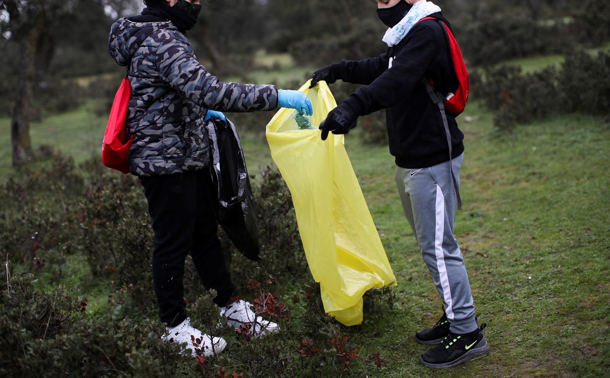 Varios estudiantes de 1º de la ESO participan en la recogida de basura que forma parte de un proyecto educativo, en San Sebastián de los Reyes (Madrid)