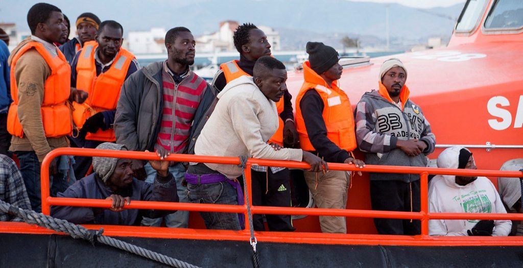 Un grupo de inmigrantes a su llegada a la localidad granadina de Motril