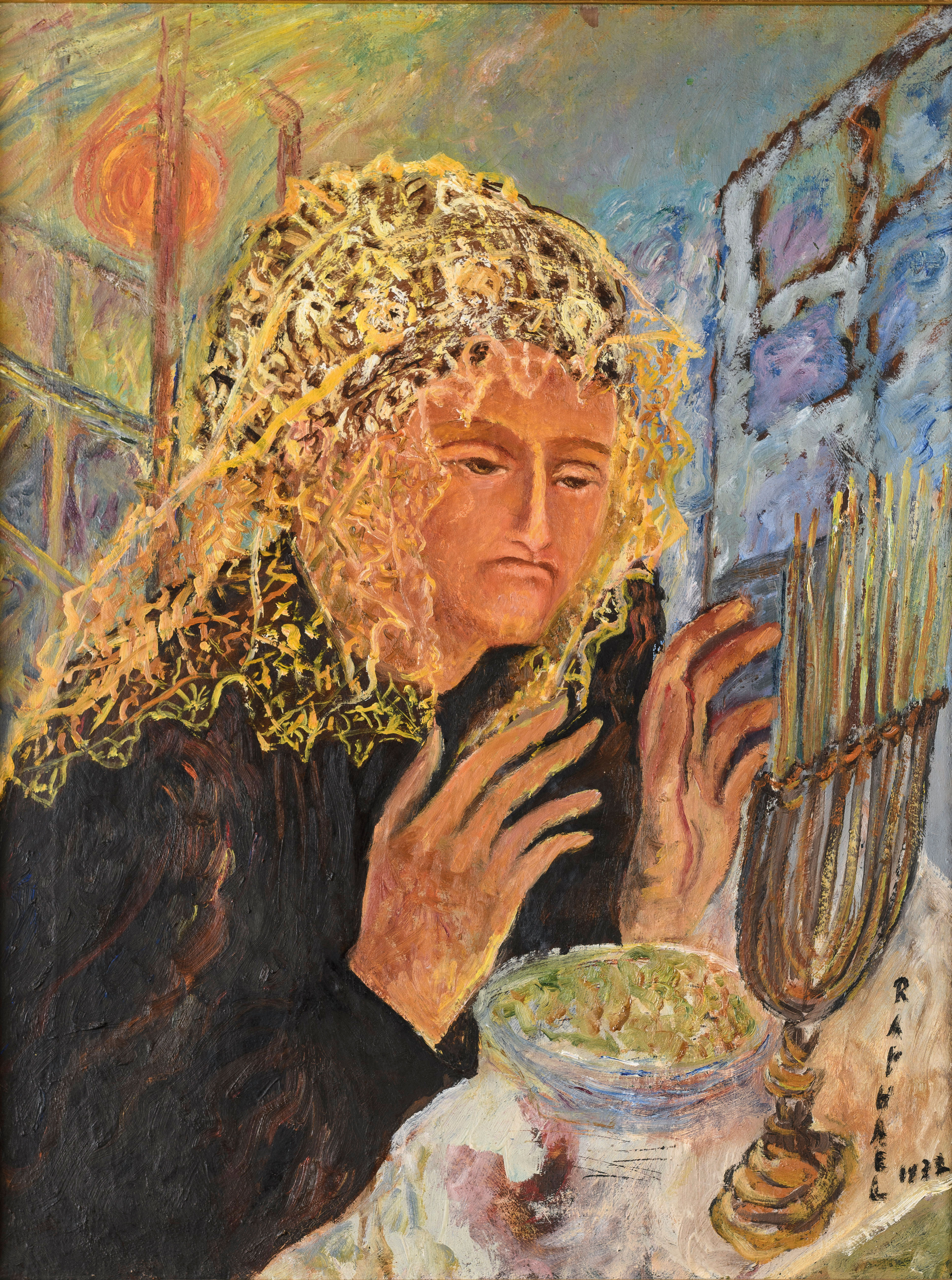 Mi madre bendice las velas como en el cuadro de la lituana Antonietta Raphaël (1895-1975), la pintura más representativa de este momento femenino íntimo y doméstico. La obra, creada en 1932, plasma el instante más solemne de la mujer judía cuando enciende las luces que consagran la entrada al Shabat. En el lienzo, Antonietta Raphaël expresa un doble homenaje: A su madre Chaya y a la tradición que se convierte en base sólida y fundamento de su futuro, emblema de una religión que se transformará a lo largo de su vida de mandamiento a recuerdo. La obra ofrece una mirada conmovedora de la tradición y la espiritualidad femenina dentro de la familia judía.