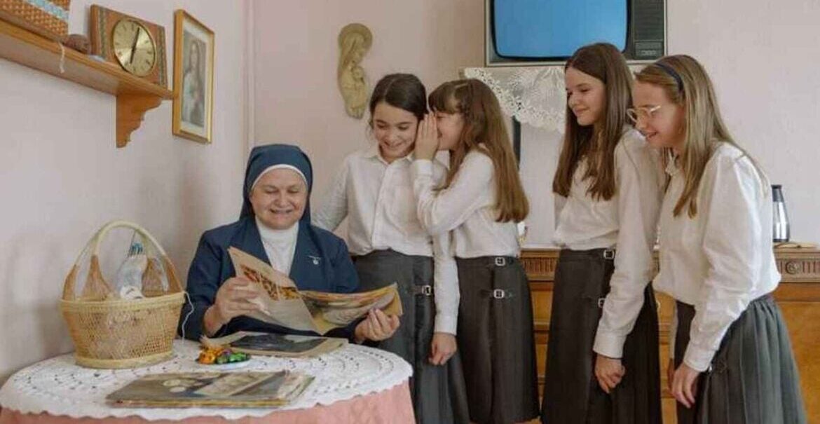 Porque, fiel a sus recuerdos, Palomero reconstruye con mimo, respeto y buen humor aquel modelo educativo a “dos velocidades” que forjó su personalidad como mujer: uniformes de falda plisada, confesión semanal y redacciones sobre la sexualidad, el pecado y el infierno, en contraste con la campaña del Ministerio de Sanidad que extramuros promovía el uso del preservativo para luchar contra el sida.