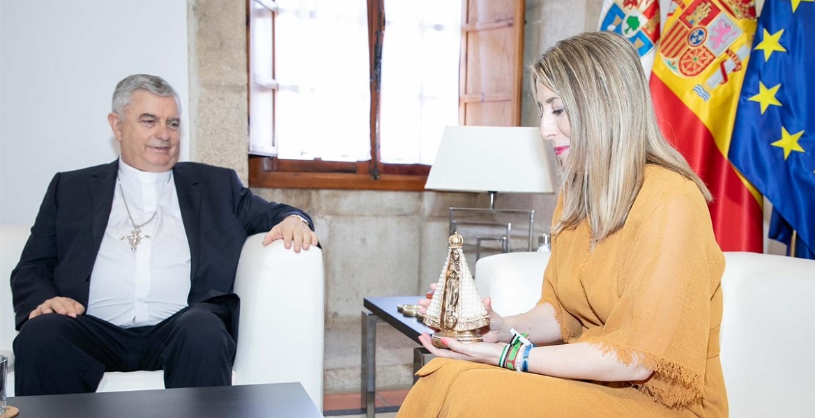 El arzobispo de Mérida-Badajoz, José Rodríguez Carballo, con la presidenta de Extremadura, María Guardiola