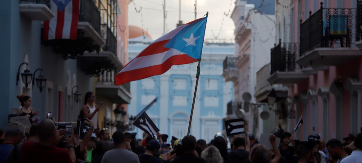 Manifestantes protestan delante de la sede del Gobierno en San Juan (Puerto Rico) en julio de 2019. EFE/ Thais Llorca