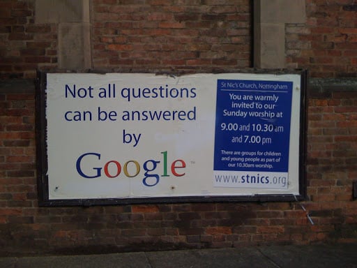 En nuestro mundo hay mucha gente que dice no tener fe en Dios pero termina poniendo toda su confianza en otras cosas o personas que, como le pasó a Google, pueden fallarnos. Recuerdo una famosa foto de un cartel de una iglesia presbiteriana que decía: “Hay algunas cuestiones que no pueden ser respondidas por Google”. De alguna forma, todos necesitamos confiar en algo o alguien, encontrar respuestas y seguridades, bases sobre las que apoyarnos para lo bueno y, especialmente, para lo malo. Y, tristemente, sucede que las grandes preguntas sobre el sentido de nuestra vida nos surgen en los momentos de crisis, de conflicto, de pérdida, y buscamos respuestas donde, seguramente, no las vamos a encontrar.